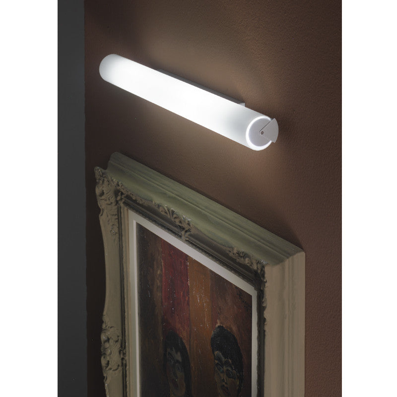Short description: Olympia - Wall - 615mm / 24 3/16" x 65mm / 2 9/16" - 1 x 16W LED - 120/277Vac, Non-Dimmable , Gray Metal and White Glass.